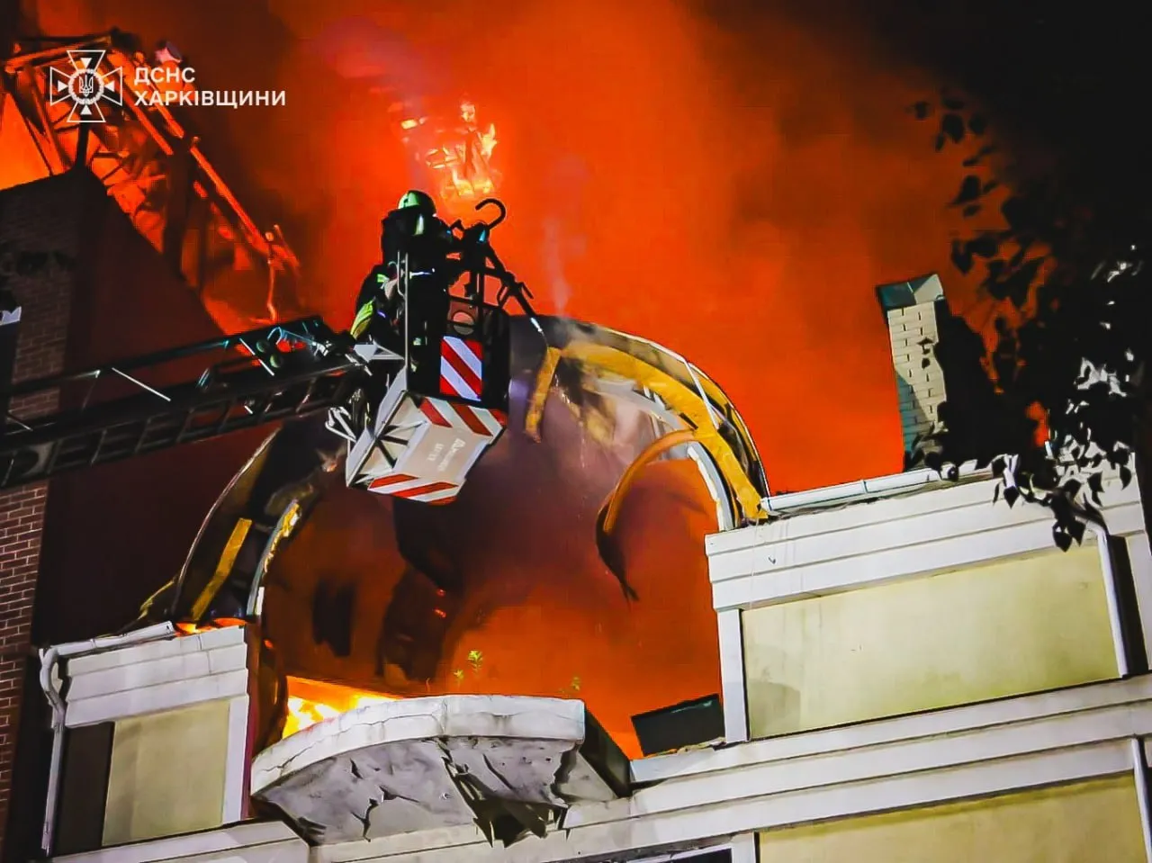 В результате попадания беспилотника загорелся четырёхэтажный жилой дом. Жильцов удалось спасти, во время тушения пожара пострадали трое пожарных.