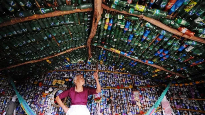 După ce locuința ei făcută din lut s-a prăbușit în urma unui cutremur, Maria Ponce, o pensionară din El Salvador, și-a construit o nouă casă din sticle de plastic, pentru că pur și simplu nu avea bani pentru una convențională, relatează Antena3.ro.
