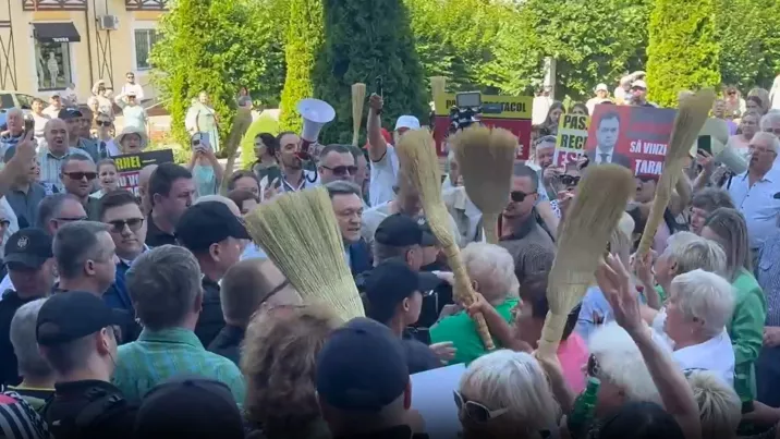 Premierul Moldovei, Dorin Recean, a fost întâmpinat cu proteste la Orhei. Manifestanții au venit cu mături la intrarea în sediul Consiliului Raional.