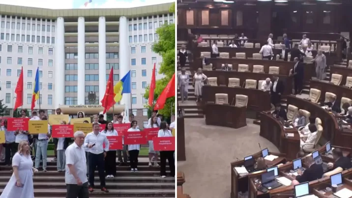 Ulterior, mai mulți deputați BCS au ieșit la un protest în fața Legislativului.