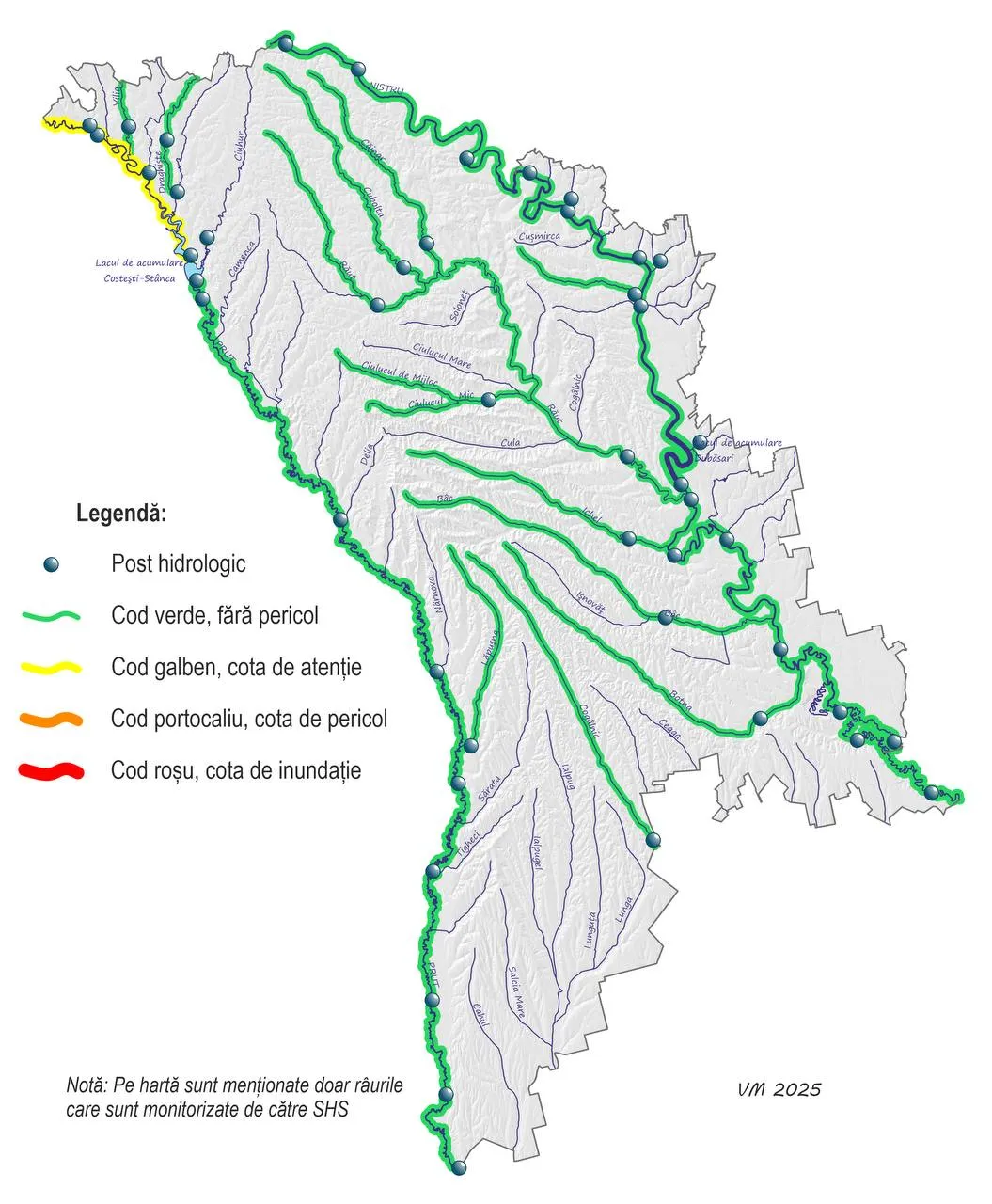 Zone vizate conform hărții oficiale emise de Serviciul Hidrometeorologic de Stat.