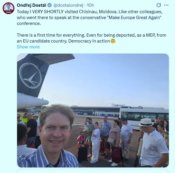 „Astăzi am vizitat foarte pe scurt Chișinăul, Moldova. La fel ca alți colegi care au mers acolo pentru a vorbi la conferința conservatoare „Make Europe Great Again”. Pentru toate există un început. Chiar și pentru a fi deportat, în calitate de europarlamentar, dintr-o țară candidată la UE. Democrație în acțiune”, a scris la rândul său europarlamentul pe pagina sa de X.