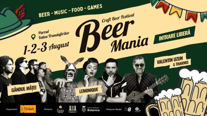 Începe luna august cu stil – în Parcul Valea Trandafirilor, între 1 și 3 august, se deschide luna distracțiilor la Beer Mania, festivalul dedicat iubitorilor de bere artizanală, muzică live și atmosferă relaxată. Ajuns la cea de-a 5-a ediție, evenimentul promite un weekend plin de savoare, în care poți descoperi cele mai bune beri craft din Moldova și nu numai.