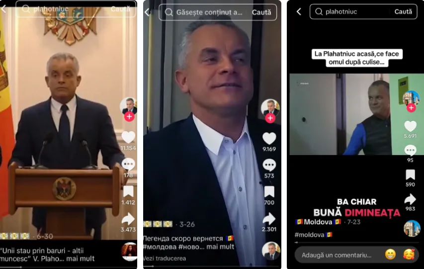 Numeroase conturi anonime din rețeaua Meta, din care fac parte Facebook și Instagram, distribuie sponsorizat postări cu declarațiile avocatului lui Plahotniuc, Lucian Rogac, dar și imagini video care îl pun pe fostul lider democrat într-o lumină pozitivă. Și pe TikTok au apărut o mulțime de clipuri video în care apare fostul politician.