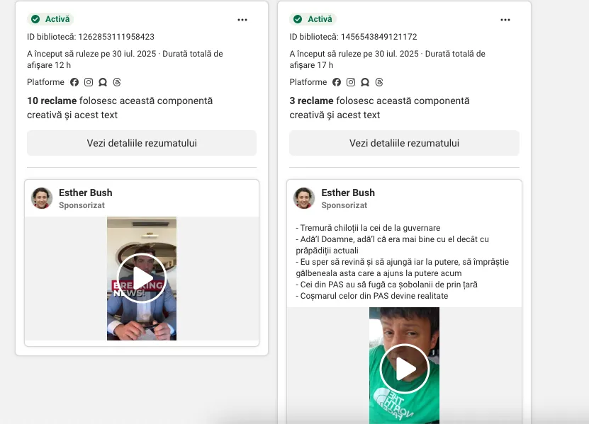 „Prima anomalie este comportamentul temporal: contul apare înregistrat ieri și trece direct în faza de promovare plătită, cu mai multe seturi de reclame lansate simultan. Acesta este un tipar tipic „burner page”, pagină setată pentru termen scurt și ștearsă ulterior. De regulă, tiparul este folosit în operațiuni politice coordonate, unde identitatea contează mai puțin decât viteza de diseminare. (...)