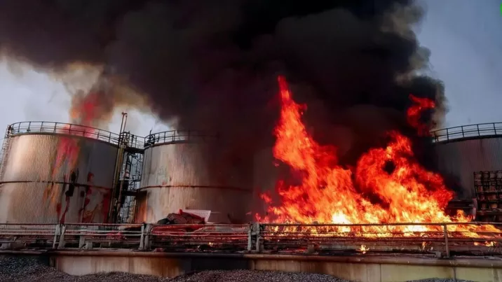 /VIDEO/ Incendiu de proporții în Rusia: Un depozit de petrol a luat foc în urma unui raid ucrainean