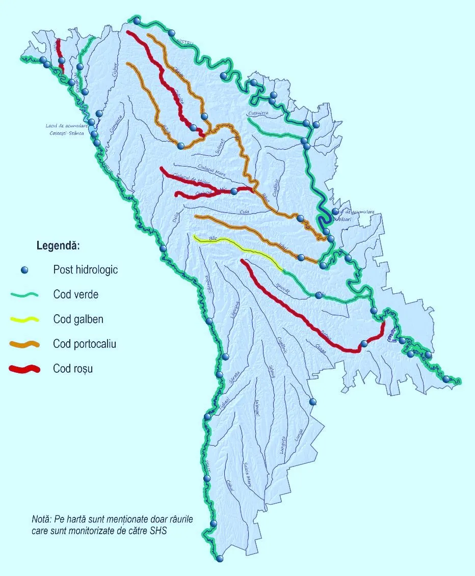 Codul roșu, portocaliu și galben se referă în principal la „majoritatea râurilor mici din Republica Moldova”, unde „se menține o scurgere redusă a apei, sub mediile lunare multianuale”.