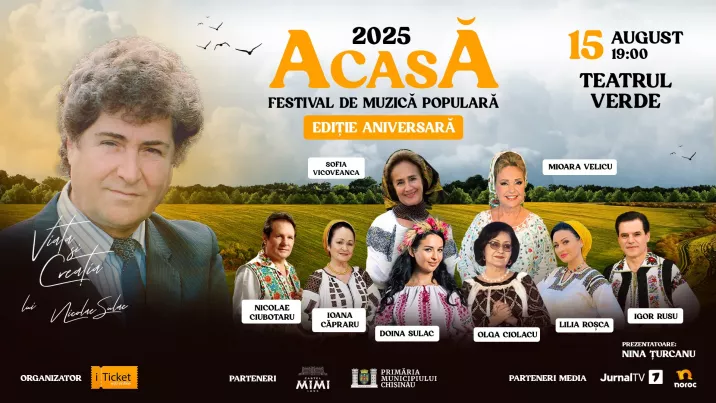 Pe 15 august 2025, Teatrul Verde din Chișinău va găzdui o ediție aniversară a Festivalului ACASĂ, marcând 5 ani de când acest eveniment a devenit o emblemă a muzicii populare și a identității noastre naționale.