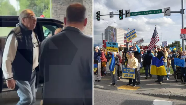 /VIDEO/ Cum a apărut Lavrov în Alaska, după zborul cu avionul „cocainei diplomatice”: Sute de oameni protestează