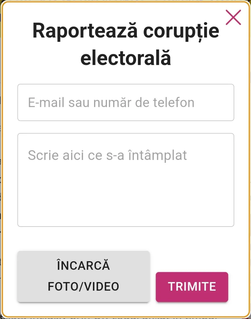 Instrumentul permite raportarea incidentelor în mod anonim, dar poate fi lăsat și un număr de telefon sau e-mail. Utilizatorul trebuie doar să ofere detalii despre locul, data și tipul neregulii, astfel încât jurnaliștii noștri să poată verifica și documenta faptele. În același timp, pot fi expediate ușor redacției materiale video sau foto din timpul incidentului.