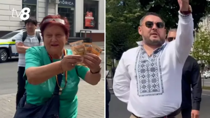 Protestul nu e unul adevărat, dacă nu se adună și vreo câțiva contramanifestanți. De data această, o femeie a decis să scoată din buzunar 150 de euro și să spună la cameră, că Șor a plătit-o pentru prezență. Momentul a fost surprins de TV8.
