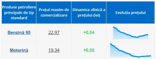 Prin urmare, un litru de benzină va fi comercializat cu 22 de lei și 97 de bani, iar un litru de motorină va ajunge să coste la pompă 19 lei și 34 de bani.