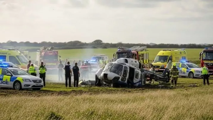 Aproximativ 24 de minute mai târziu, poliția a anunțat că a fost sesizată despre un elicopter prăbușit pe un câmp, lângă un drum din zona Shanklin. Imagini aeriene difuzate de presa britanică au arătat că fuselajul aeronavei – un model G-OCLV – a fost grav avariat.