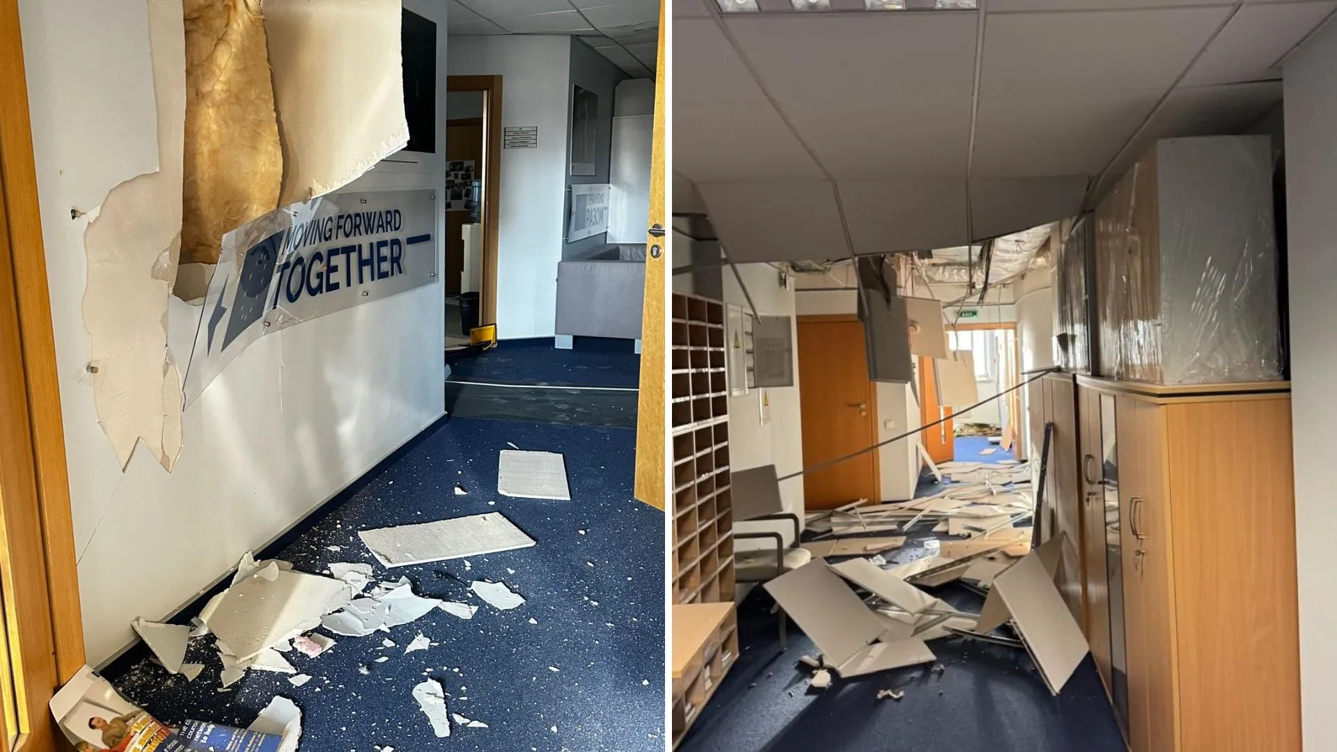 /FOTO/ Clădirea Delegației UE din Ucraina, avariată de atacul rusesc asupra Kievului. Kallas: „Alegere deliberată”