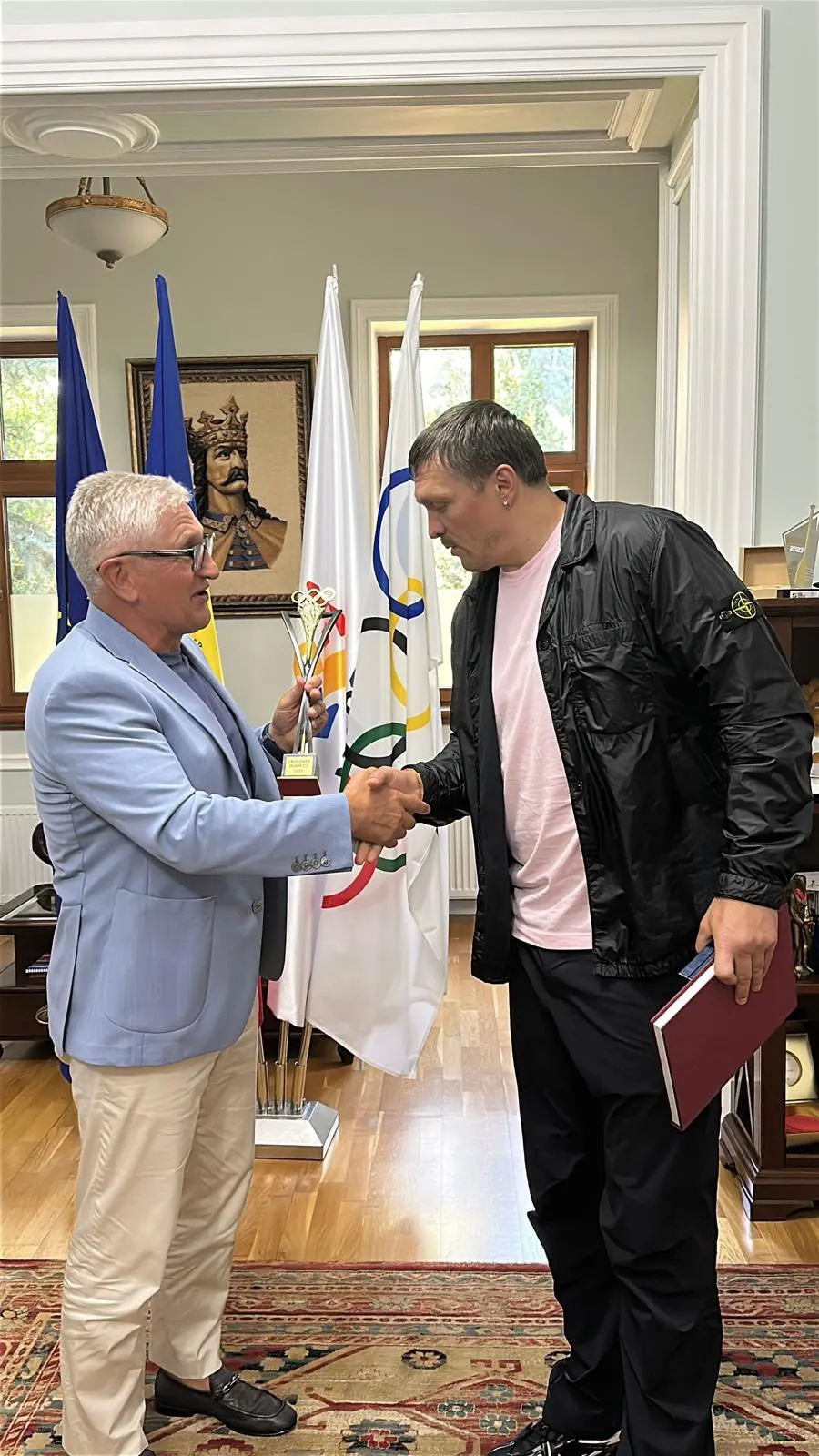 Campionul mondial ucrainean la box, Oleksandr Usyk, se află în Republica Moldova. Sportivul de 38 de ani, recunoscut ca primul boxer din istorie care a devenit de trei ori campion necontestat în „era celor patru centuri”, a vizitat joi Comitetul Național Olimpic și Sportiv și Ministerul Afacerilor Externe. Acesta a făcut și baie de mulțime.