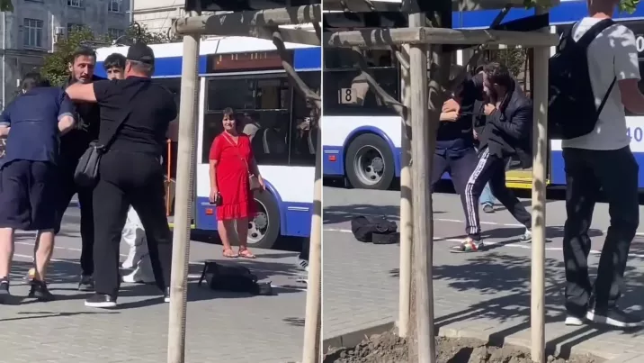 /VIDEO/ Bătaie în centrul Chișinăului: Un taxator de troleibuz, luat la pumni de un pasager care a refuzat să achite