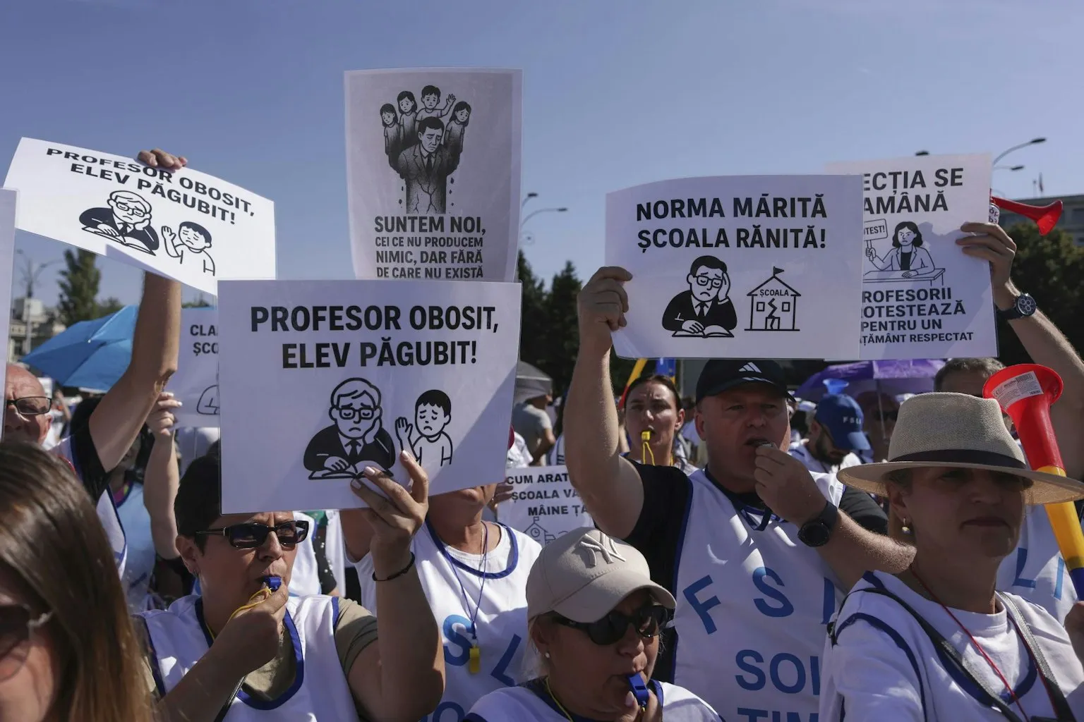 Mii de profesori din România s-au adunat în prima zi a noului an școlar la București. Aceștia protestează față de noile măsuri de austeritate anunțate de Guvern.