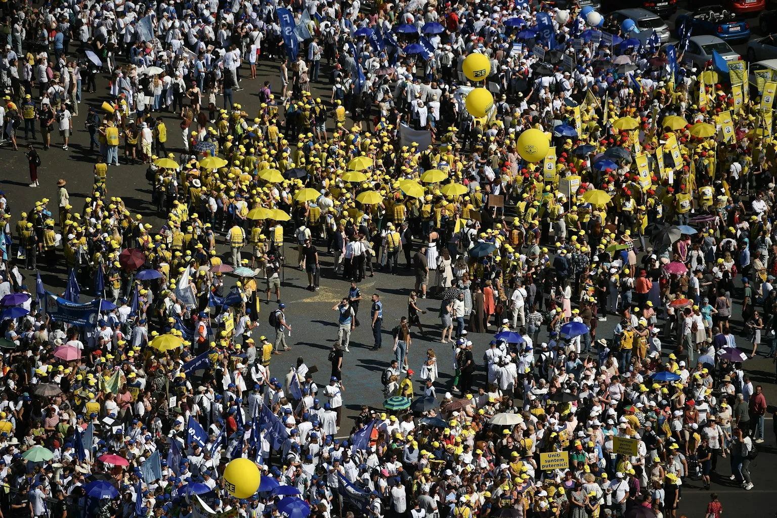 /FOTO/ Protest masiv la București în prima zi de școală: Mii de profesori au ieșit în stradă