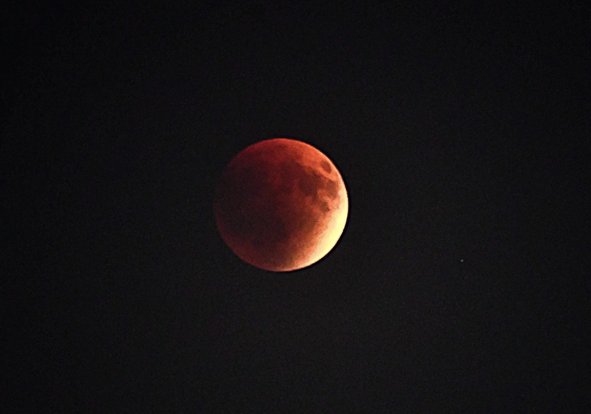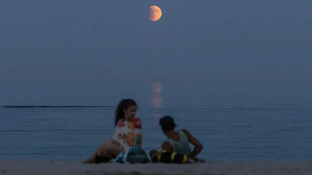Faza de totalitate a eclipsei a început la ora 20:30, a atins apogeul la 21:21 și s-a încheiat la 21:52. În acest interval, Luna a căpătat o nuanță roșiatică și a fost vizibilă aproape de orizont, în direcția est-sud-est. Fenomenul s-a încheiat complet la ora 23:55.