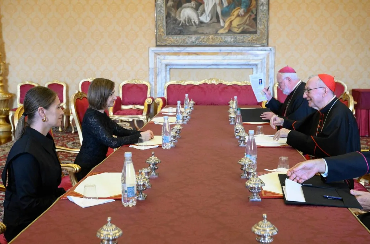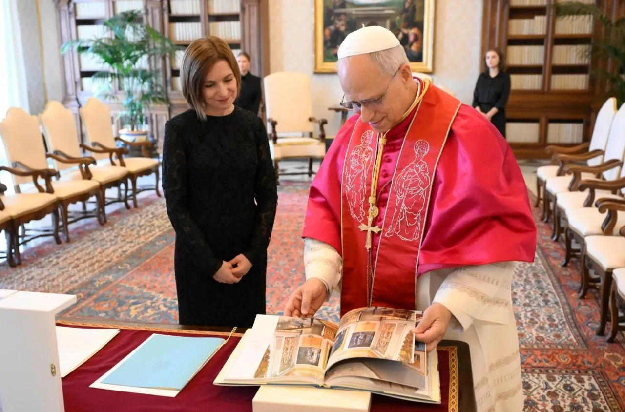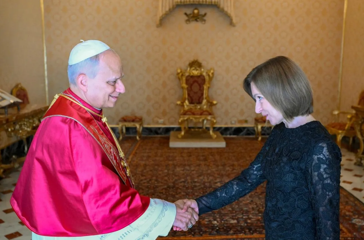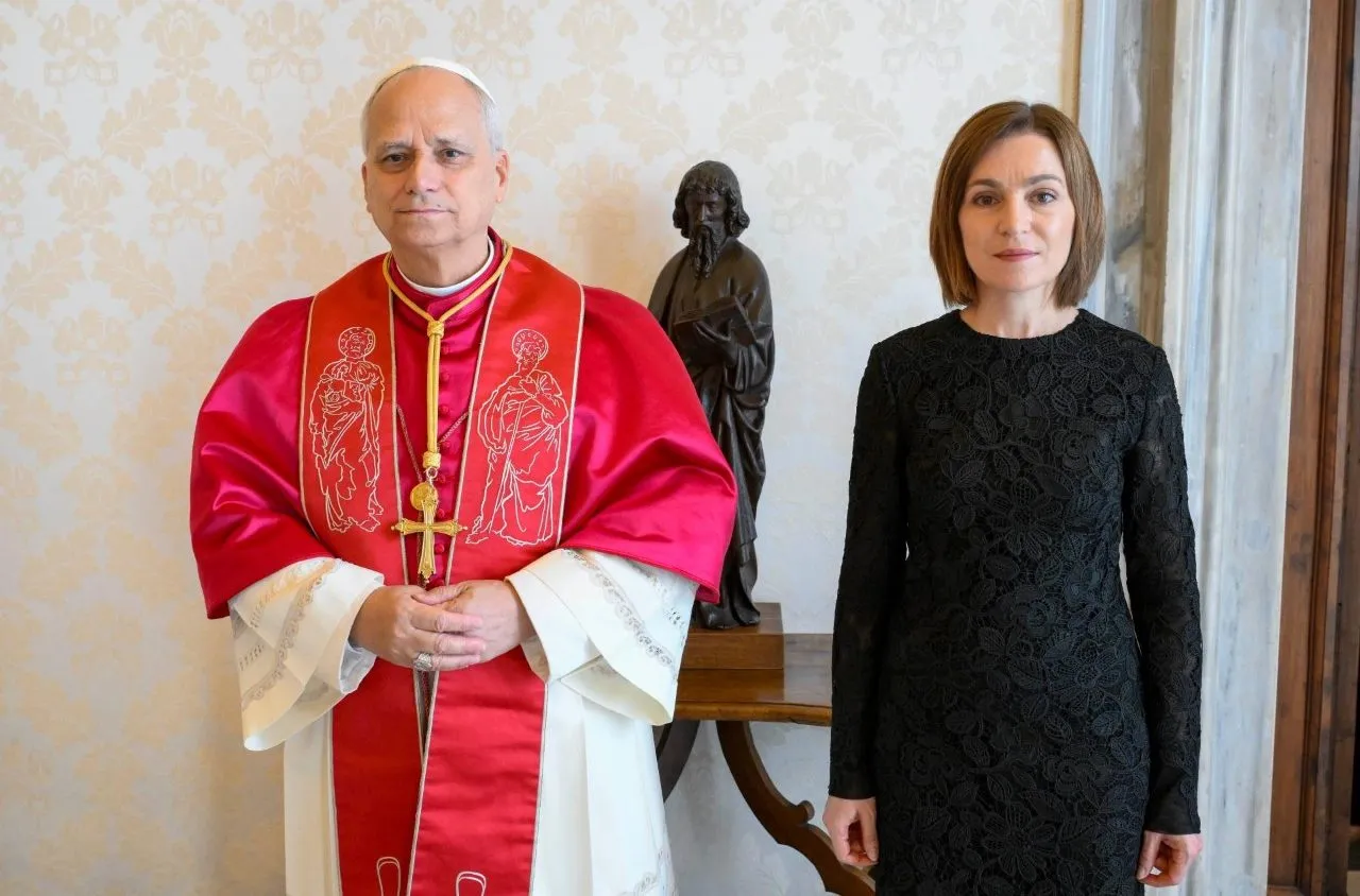 Președinta Moldovei, Maia Sandu, a fost primită în audiență de către Papa Leon al XIV-lea. Cu această ocazie, flagul Moldovei a fost arborat la Vatican.