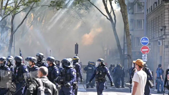 Deși marșul din capitală a început pașnic, tensiunile au izbucnit pe bulevardul Voltaire, unde poliția a raportat „o tentativă de deteriorare a unei afaceri”. Forțele de ordine au fost atacate cu pietre și sticle, răspunzând cu grenade lacrimogene și arestări.