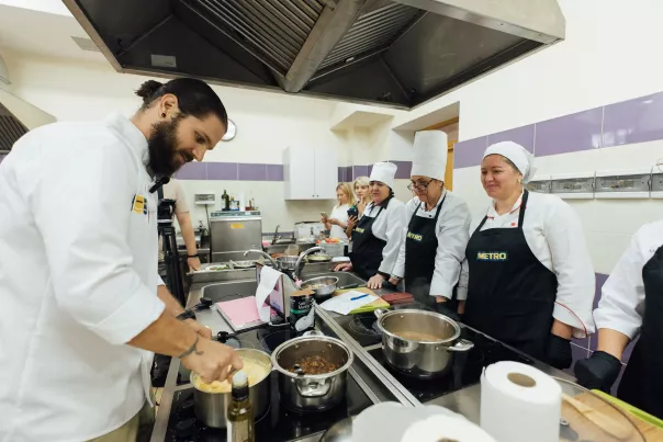 METRO Moldova sprijină educația gastronomică prin proiecte care implică profesori din 17 școli profesionale din întreaga țară. Cunoștințele acumulate ajung direct la elevi, multiplicând experiența în zeci de bucătării din Republica Moldova. Ingrediente de calitate, diversitate și inovație definesc aceste inițiative, contribuind la dezvoltarea sectorului HoReCa și la consolidarea viitorului gastronomiei naționale.