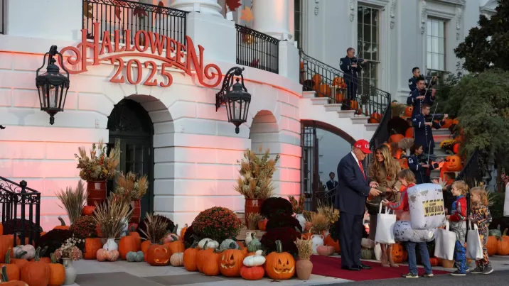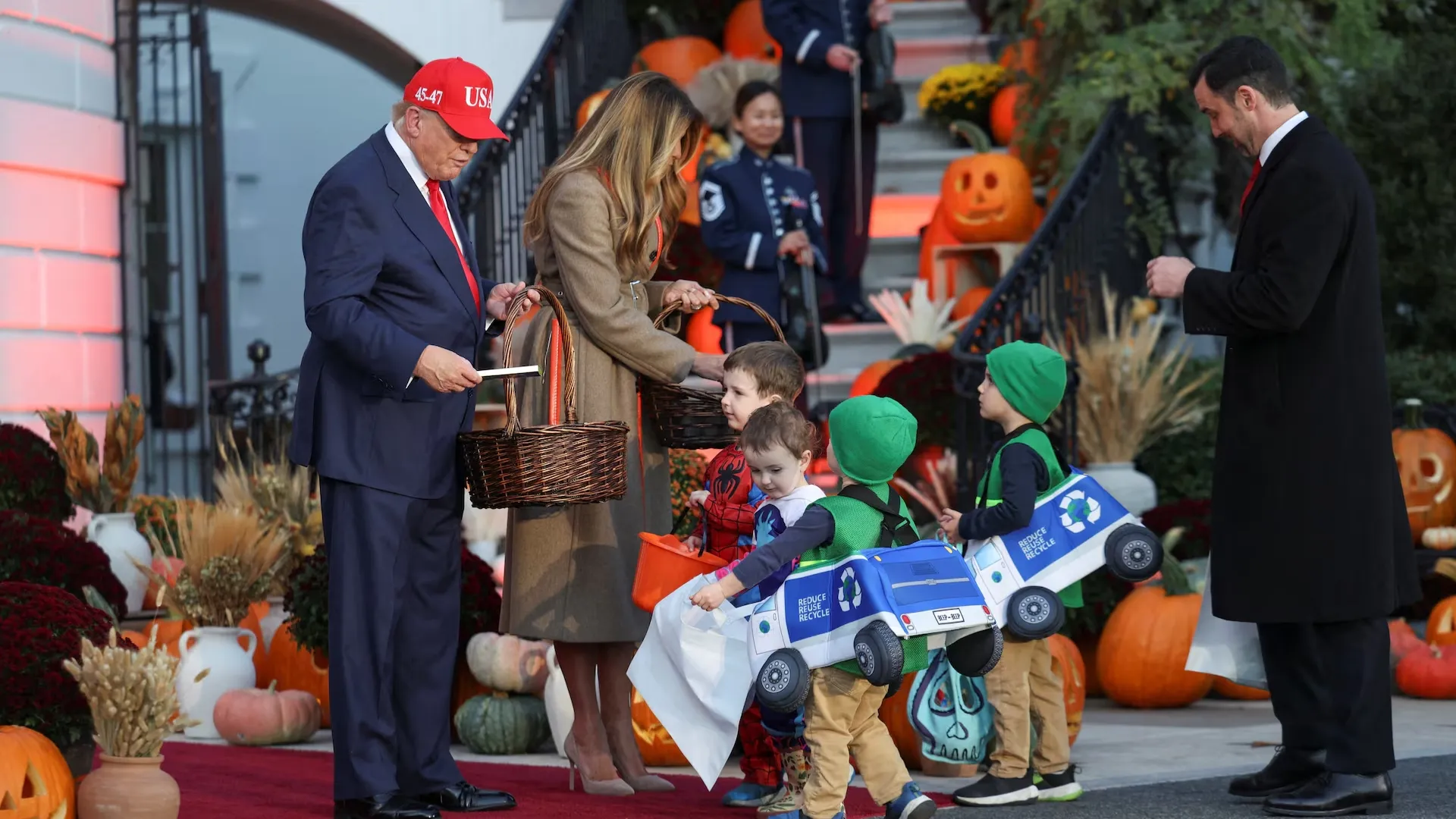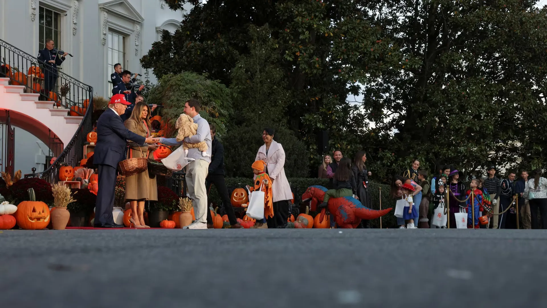 Sute de copii costumați în supereroi, dinozauri și personaje celebre au invadat peluza sudică a Casei Albe, unde Donald și Melania Trump au organizat tradiționala petrecere de Halloween. Cuplul prezidențial a apărut în aplauzele mulțimii, pe acordurile orchestrale ale piesei „Thriller” de Michael Jackson.