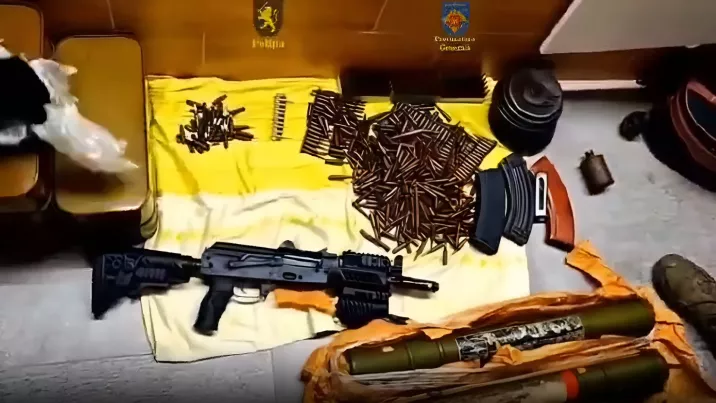 În timpul perchezițiilor, au fost descoperite și ridicate 16 arme de foc, inclusiv mitraliere și puști, dar și arme cu lunetă, aproximativ zece mii de cartușe, 5 grenade și 2 aruncătoare, camuflate și ascunse în perete. De asemenea, au fost ridicate 3 pașapoarte cu aceeași fotografie, dar identități diferite, și alte obiecte interzise.