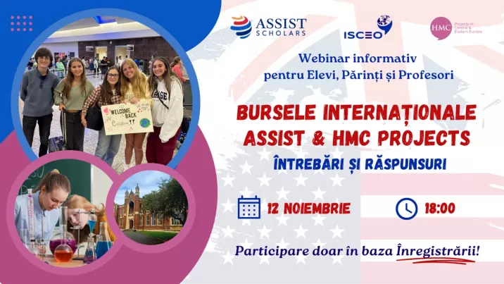 De asemenea, un webinar informativ dedicat burselor internaționale ASSIST și HMC Projects va avea loc miercuri, în data de 12 noiembrie, la orele 18:00.