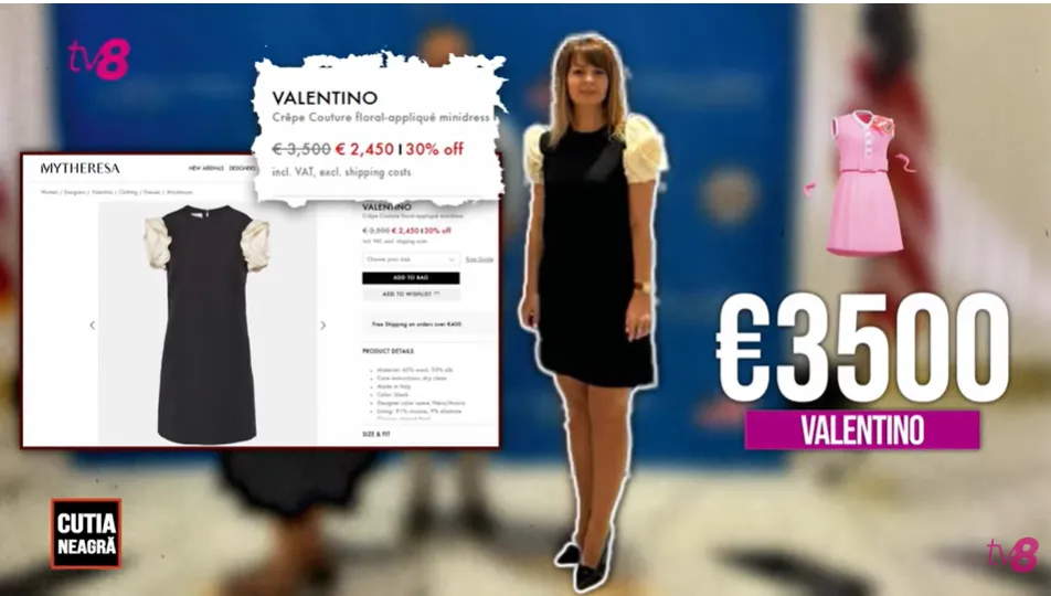 De exemplu, la o recepție oferită de Ambasada SUA la Chișinău, viceprimarul Capitalei a venit într-o altă creație Valentino, de data asta mult mai scumpă. Rochița midi din lâniță fină de un negru sobru, completată cu mâneci elegante din mătase crem costă nici mai mult, nici mai puțin cât aproape trei salarii ale proprietarei - 3500 de euro. De altfel, viceprimarul are și o colecție de pantofi Valentino.