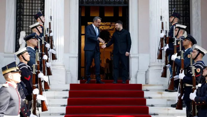 Președintele Ucrainei, Volodimir Zelenski, s-a întâlnit duminică cu premierul Greciei, Kyriakos Mitsotakis, la Atena. Luni, Zelenski va zbura în Franța, iar marți se va afla în Spania, transmite Mediafax.