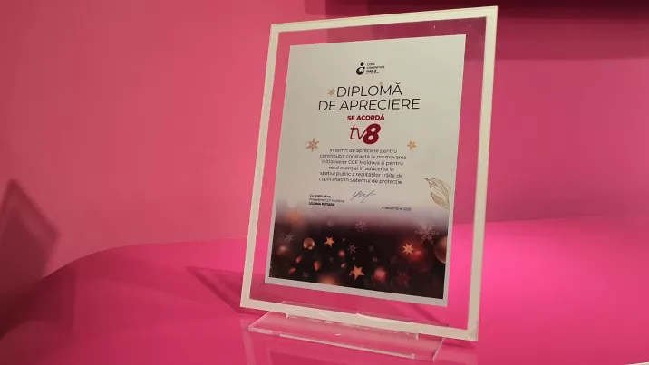 TV8 a fost distins cu o diplomă de apreciere din partea CCF Moldova pentru rolul esențial în reflectarea problemelor cu care se confruntă copiii aflați în sistemul de protecție și contribuția constantă la promovarea inițiativelor organizației. Distincția a fost ridicată de către directoarea generală a postului nostru de televiziune, Svetlana Buza, în cadrul Galei Generozității 2025, ajunsă la cea de-a 12-a ediție.