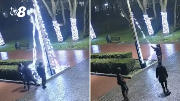 Deranjați de luminițele de Crăciun? Trei tineri au fost surprinși în timp ce rupeau o instalație luminoasă din parcul central al municipiului Bălți. În imaginile video se vede cum aceștia se apropie de un brad decorativ și trag de elementele acestuia până când o parte din instalație cedează.