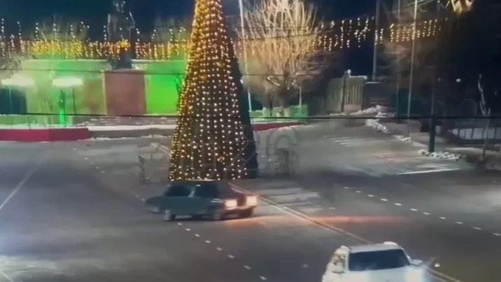 Incident în Kazahstan, în toiul sărbătorilor de iarnă. Șoferul unui „Jiguli” a doborât bradul principal de Anul Nou, instalat în piața centrală a unei localități. Ulterior, a fugit de la locul faptei.