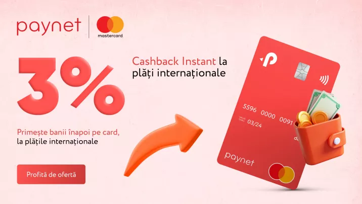 - Beneficiu: Primești 3% cashback instant din valoarea tranzacției.