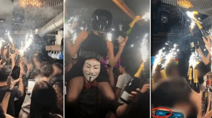 Petrecerea de Revelion dominată de adolescenți și tineri era în toi la barul „Le Constellation”. În jurul orei 1:30 dimineața, totul s-a schimbat dramatic. Conform relatărilor martorilor și înregistrărilor, incendiul ar fi putut fi provocat de artificii plasate în interiorul sticlelor de șampanie. Scânteia ar fi aprins izolația inflamabilă de pe tavan. Au apărut fotografii care înfățișează o femeie cu o cască neagră, așezată pe umerii unui bărbat care poartă o mască. Femeia ține în mână o sticlă de șampanie la care sunt atașate artificii, foarte aproape de tavan. Atunci s-a aprins localul.