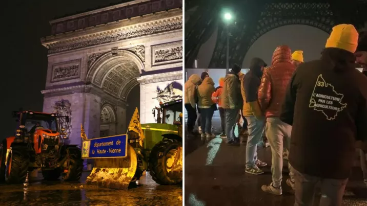 Potrivit acestuia, „câteva zeci de tractoare” au intrat în capitala franceză dinspre sud. Jurnaliștii de la fața locului atestă că aproximativ douăzeci de fermieri se află la Turnul Eiffel, cu în jur de zece tractoare parcate în apropiere.