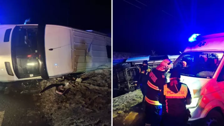 Un microbuz care se deplasa din Republica Moldova spre Germania s-a răsturnat vineri noaptea în județul Suceava din România. Autoritățile au fost alertate de urgență, deoarece în vehicul se aflau 11 persoane.