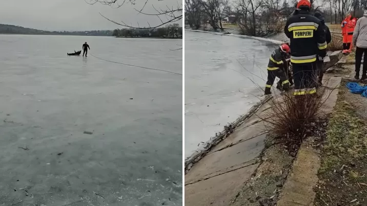 La fața locului au ajuns pompierii, un echipaj de poliție și ambulanța. Un salvator a mers pe gheață până la bărbat și, folosind un colac de salvare, l-a adus în siguranță la mal, transmite Nordinfo.