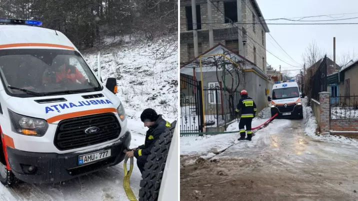 Potrivit unui comunicat al IGSU, în localitatea Podgoreni, raionul Orhei, o ambulanță nu a putut urca o pantă din cauza carosabilului alunecos, iar salvatorii au intervenit pentru a ajuta echipajul medical să ajungă la pacient.