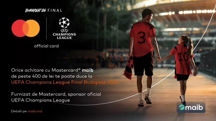Începând cu 2 februarie, maib și Mastercard lansează o campanie promoțională care te poate duce chiar în tribunele Puskás Aréna, la Finala UEFA Champions League Budapesta 2026, pe 30 mai. Până atunci, te așteaptă surprize și recompense gândite pentru cei care trăiesc fotbalul dincolo de scor.