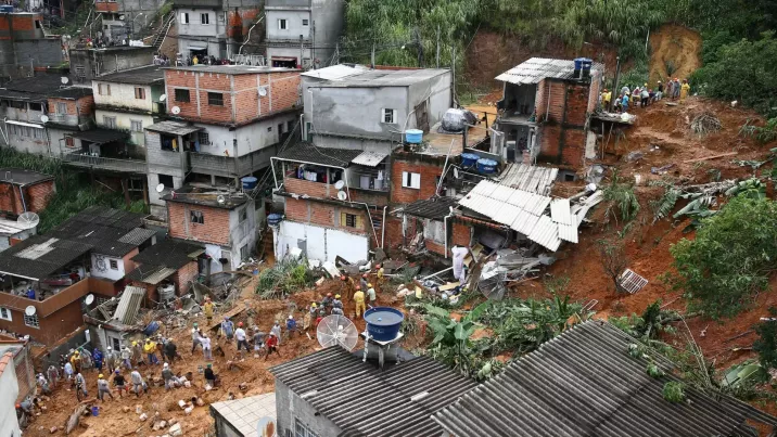 Într-un cartier aflat pe un deal din Juiz de Fora, 12 case au fost înghițite de o alunecare masivă de teren. „Multe persoane se aflau în case, noaptea, când ploua”, a declarat maiorul Demetrius Goulart, din cadrul brigăzii de pompieri.