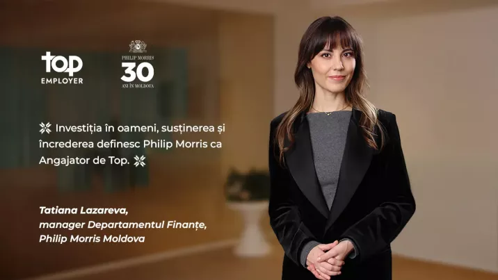Philip Morris Moldova a obținut certificarea de Angajator de Top pentru a cincea oară, o recunoaștere care vine într-un moment simbolic: în acest an, compania marchează 30 de ani de activitate pe piața din Republica Moldova. Dincolo de criterii și standarde internaționale, acest titlu reflectă, înainte de toate, experiențele oamenilor care lucrează în această companie.