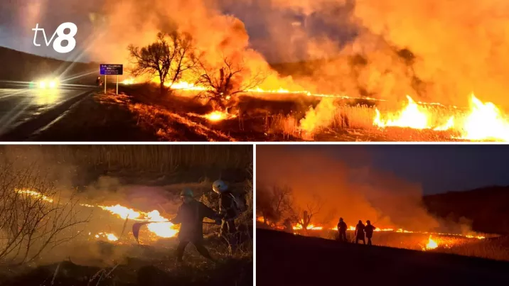 Incendiu de vegetație surprins de echipa TV8. Flăcările s-au extins pe traseul Rădeni, raionul Călărași.