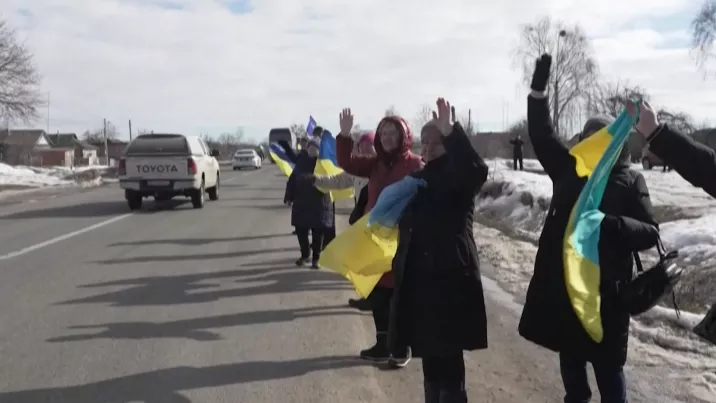 Zeci de oameni s-au adunat la o localitate de la granița cu Belarus pentru a și întâmpina eroii care s-au întors acasă după ce au fost capturați de trupele ruse. Printre cei prezenți se numără și Laryssa Gladka, în vârstă de 50 de ani, al cărei soț a fost ucis în luptă, iar fiul ei servește acum în armată. Deși rudele ei nu se află printre prizonierii eliberați, femeia spune că nu putea rata ocazia să-i salute pe alții care revin acasă.