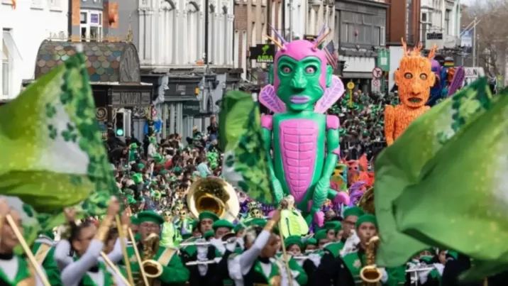 Spectacol pe străzile din Dublin, astăzi, de Ziua Sfântului Patrick. Mii de participanți - fanfare internaționale și artiști costumați au defilat prin oraș, celebrând astfel cultura și tradițiile irlandeze. Este ziua în care străzile pline de muzică sunt îmbrăcate în verde, iar localnicii și vizitatorii poartă eșarfe și pulovere asortate și își pictează trifoi pe obraji.
