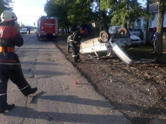 Кроме столкновения, автомобиль, в котором находились молодые люди перевернулся и врезался в столб.
