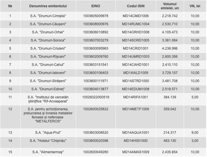 Агентство публичной собственности также распродает активы еще 15 акционерных обществ, в 11 из которых реализуется до 90% уставного капитала, передает mold-street.com