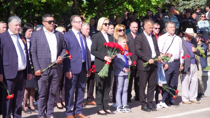 День Победы массово отметили и в столице Гагаузии. В Комрате сотни людей с цветами в руках прошли колонной к Мемориалу воинам, погибшим во Второй мировой войне. Многие из них несли на груди запрещенные законом - георгиевские ленты.
