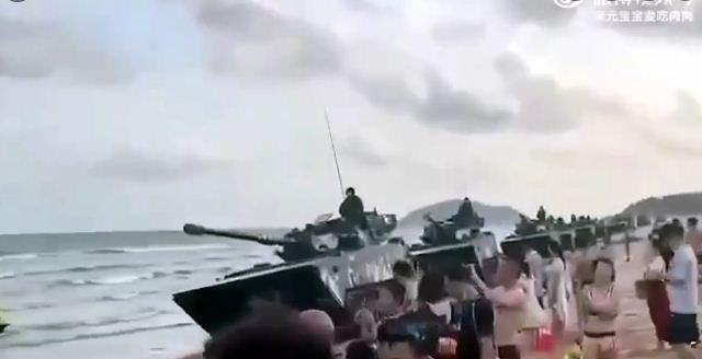 На пляже напротив Тайваньского пролива заметили бронетехнику.